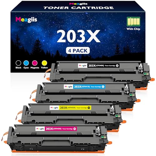 Meagiis 203X Cartouche de Toner Compatible pour HP 203X 203A CF540A CF540X Toner pour HP Color Laserjet Pro MFP M254dw M254nw M254dn M281fdn M281cdw M281fdw M280nw (2 Noir, 1 Cyan, 1 Magenta, 1 Jaune)