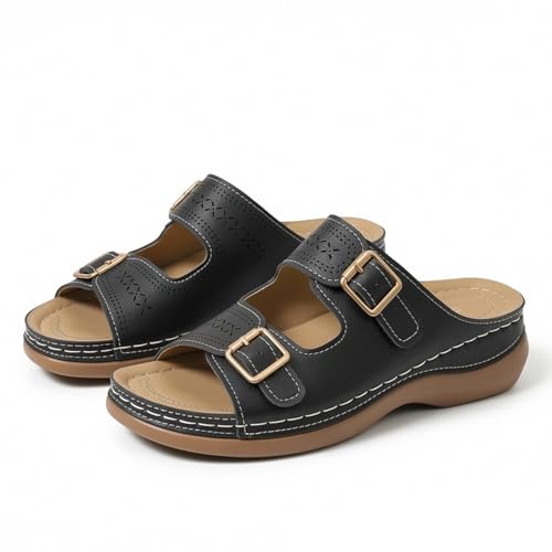 Générique sandales noires femme tong cuir femme Sandales Femme Été Confortable Orthopédiques pour Sandale À Arrière Lavables Sandal Bout Ouverte De Sport Compensées Plate-forme Chaussure