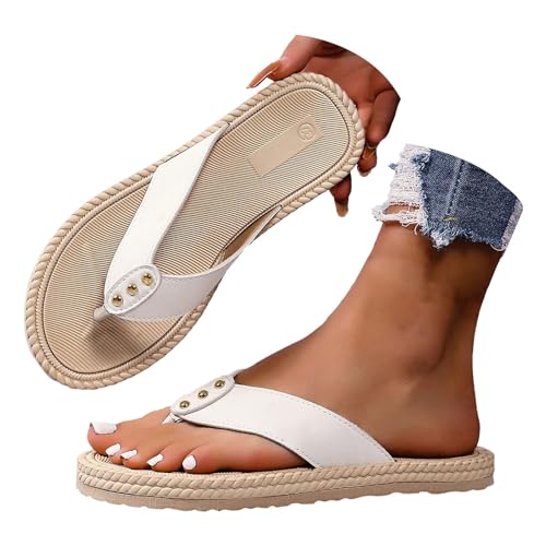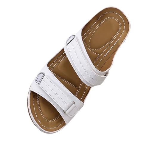 Cocila Tongs Femmes Sandales Mode Été De Plage Et Claquettes Piscine Soutien La Voûte Plantaire Pour Femmes Correction Fasciite Plantaire Marche Tong Femme Cuir Confort Orthopedique Compensee Blanc