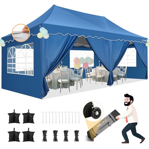 Tonnelle de Jardin Exterieur 3x6, Tonnelle Pliante 3x6 Imperméable avec 4 Parois Latérales,6 Sacs de Sable, Tente Hauteur Réglable,Protection UV 50+,12 Clous de Sol,Fête/Festival/Camping, Bleu