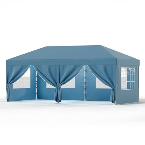 Tonnelle Pliante 3x6 de Jardin, Imperméable et Stable, Tente de Reception, Tonnelle de Jardin avec 6PCS Panneaux latéraux,fête extérieure, 12 Crochets de Sol, pour Plage/Festival/Camping/marché, Bleu