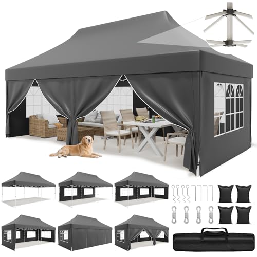 HOBBYZOO Tonnelle Pliante 3x6 m, Imperméable & Résistante,UV 50+ – Tissu Oxford 420D, avec 6 Parois latérales,Réglable en Hauteur,pour Jardin, Camping & Événements, Gris foncé