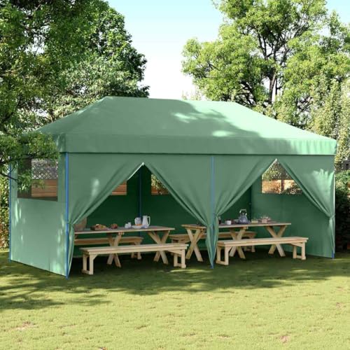 Tente de réception pop-up pliable avec 4 parois latérales vertes pour événements en plein air, fête de jardin et tonnelle avec cadre en acier et fenêtres