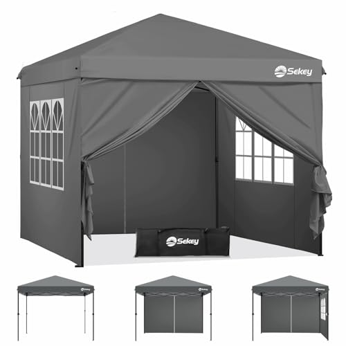 Sekey Tonnelle de Jardin 3x3m Imperméable Pop up, Barnum Pliant 3x3 avec Rideaux, Tonnelle de Jardin Exterieur, Anti UV Respirable Hauteur Réglable (Gris, avec des Parois Latérales)