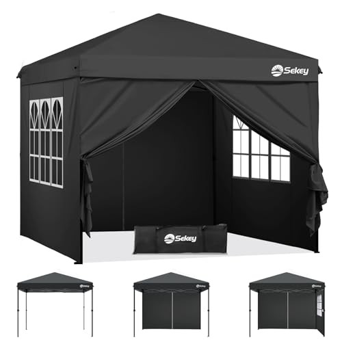 Sekey Tonnelle de Jardin 3x3m Imperméable Pop up, Barnum Pliant 3x3 avec Rideaux, Tonnelle de Jardin Exterieur, Anti UV Respirable Hauteur Réglable (Noir, avec des Parois Latérales)