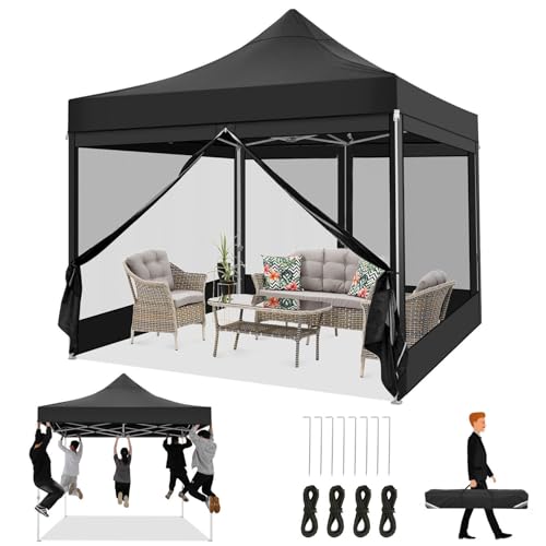 COBIZI Tonnelle de Jardin 3x3m Extérieure Pliante Imperméable avec Paroi Latérale en Maille, Hauteur Réglable pour Patios, Jardin, Camping, Parti, Noir