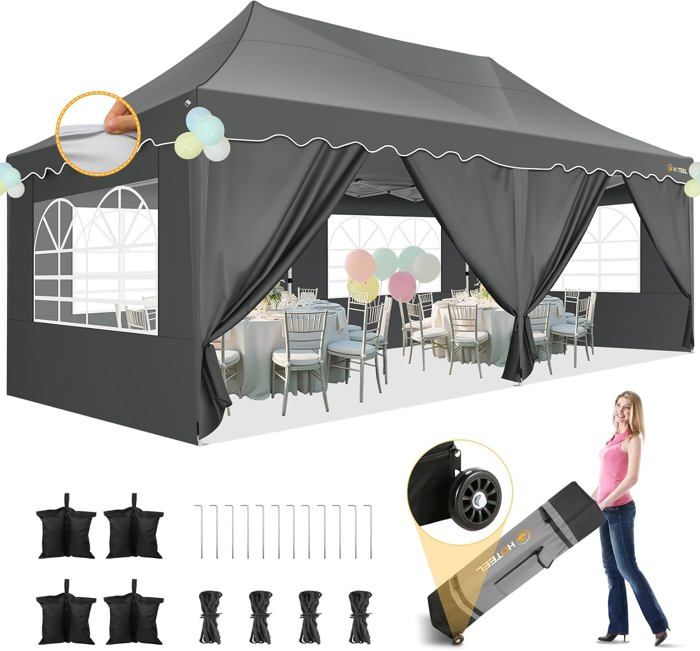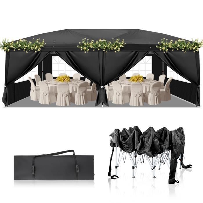 HOTEEL 3x6m Tonnelle Pliante Imperméable et Stable, avec 6 Parois latérales, UV50+ Barnum, 4 Sac Lestage Tonnelle Pop-up pour Mariage Tente de fête, marché, Pique-Nique, Camping (Noir)