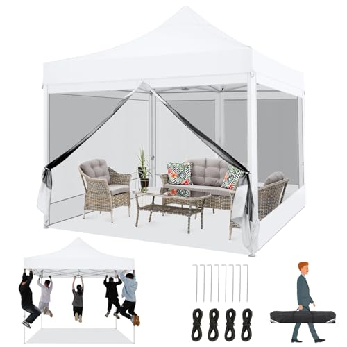 COBIZI Tonnelle de Jardin 3x3m Extérieure Pliante Imperméable avec Paroi Latérale en Maille, Hauteur Réglable pour Patios, Jardin, Camping, Parti, Blanc