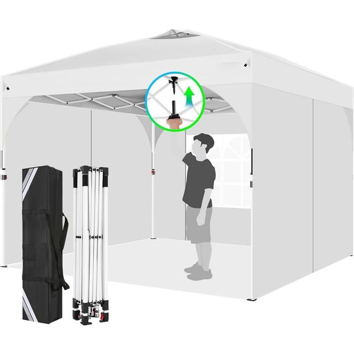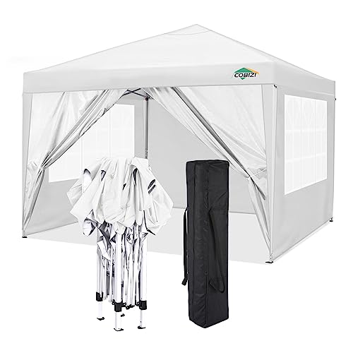 COBIZI Tonnelle Pliante 3 x 3 cm, étanche, Stable, Pop-up, Pliable, 3 x 3 cm, avec 4 côtés latéraux, imperméable, Protection UV 50+, pour Jardin, fête, marché, Pique-Nique, avec Sac (Blanc)