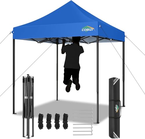 COBIZI 2x2m Tonnelle de Jardin Pliante Imperméable UV Protection Tente de réception Réglable en Hauteur Gazebo pour Mariage, Festival, Fête, Inclus Sac de Transport, Bleu