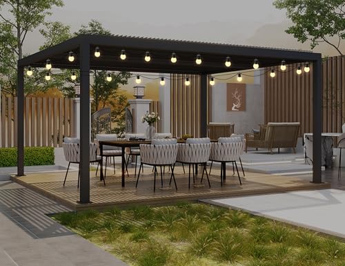 PURPLE LEAF Pergola Bioclimatique avec Guirlande Lumineuse Exterieure 4,8 x 3,68 m Pergola Aluminium Lames Orientables Superficie 17,66 m² Tonnelle de Jardin Pergola Jardin Extérieur,Gris