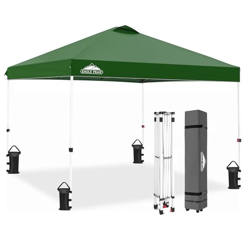 EAGLE PEAK Pop-up tonnelle de Jardin Pliable 3x3m, Tente Pliante avec Pieds Droits Hauteur réglable auvent pour Camping Plage Festival avec Sac à roulettes (Vert)