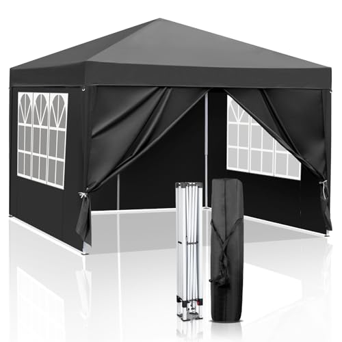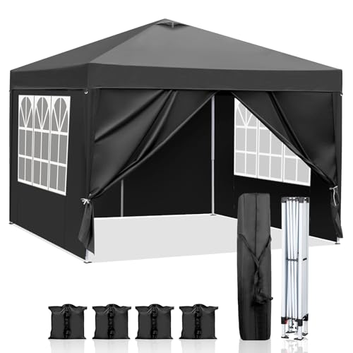 LEADZM 3x3m Tonnelle de Jardin Pliable,Pop-up,Réglable en Hauteur,Protection UV 50+,avec 4 Côtés,Cadres en Acier,Convient pour la Fête, l'extérieur,Patio,Camping (Noir)