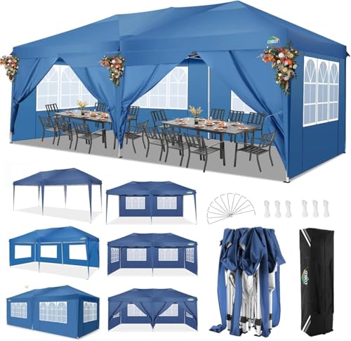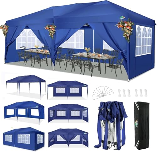 COBIZI Tonnelle Pliable 3 x 6 m - 3 x 6 m - Imperméable et Stable - Anti-UV - avec 6 parois latérales - pour Jardin, fête, Mariage, Pique-Nique, marché - Bleu