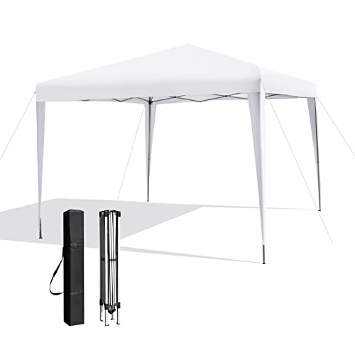 GOPLUS Tonnelle Pliante 3x3, Barnum Pliable de Jardin Extérieur avec Sac de Rangement, 249/252/255CM,pour Camping, Barbecues, Pique-niques, Fêtes (Blanc)