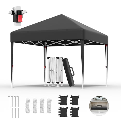 Yaheetech Tonnelle de Jardin Pop-up, Tonnelle Pliante 3x3 Imperméable avec Parois Latérale et Sacs de Sable, Barnum Pliant Anti-UV en Hauteur Réglable pour Jardin Plage Terrasse Camping Gris Foncé
