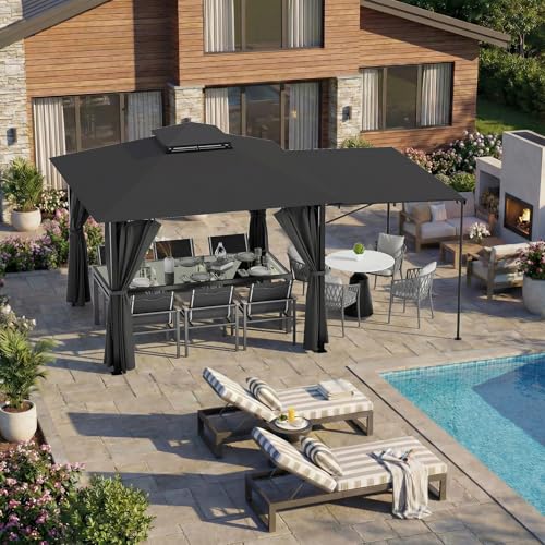 JUMMICO Tonnelle Pliante 3x3 Imperméable Luxe avec Extension d'Ombrage Amovible, Toit Double Couche et Structure Métallique Robuste Résistant aux Intempéries et UV pour Fêtes, Événements et Réceptions