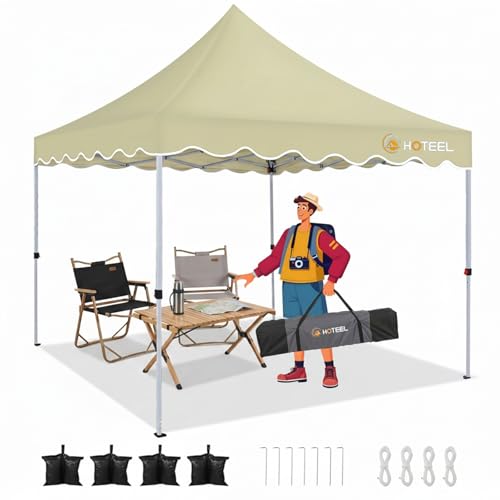 RELAX4LIFE Tonnelle Pliante 3x3 Imperméable, Barnum Pliant 3x3 Facile à Monter, Tissu Oxford Anti-UV, Hauteur Réglable, Sac de Transport, Tonnelle de Jardin Extérieur pour Marché Camping (Beige)