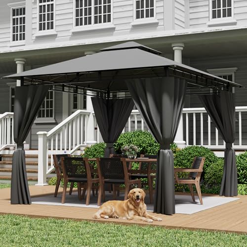 JUMMICO Tonnelle Pliante 3x3 Imperméable en Aluminium Résistante au Vent et aux UV avec Rideaux Idéale pour Jardin et Terrasse Structure Robuste et Durable Protection Efficace Contre Mauvais Temps