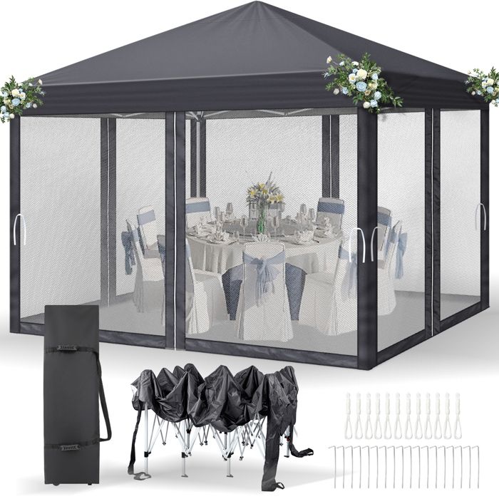 Tonnelle Pliante 3x45 ImperméableTonnelle de Jardin Exterieur avec Moustiquaire Parois LatéralesNoir