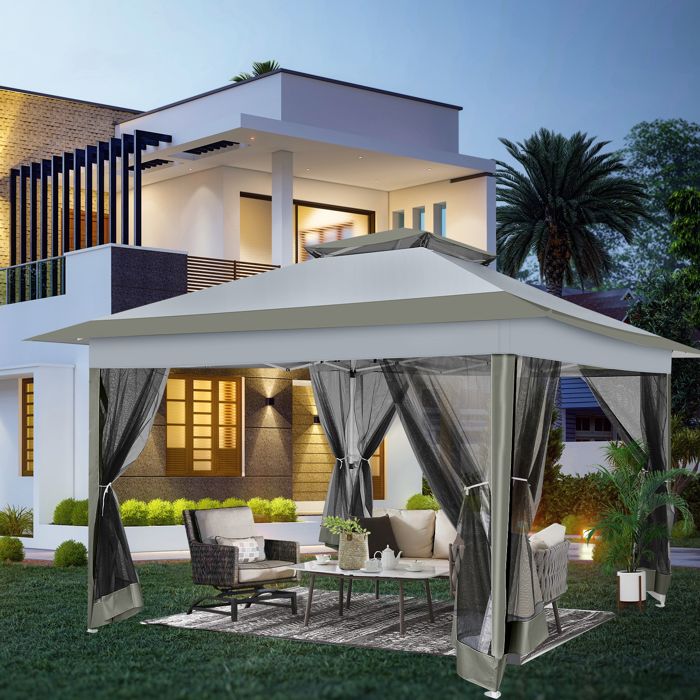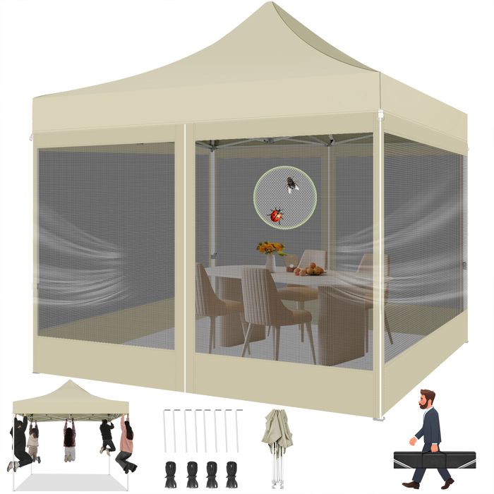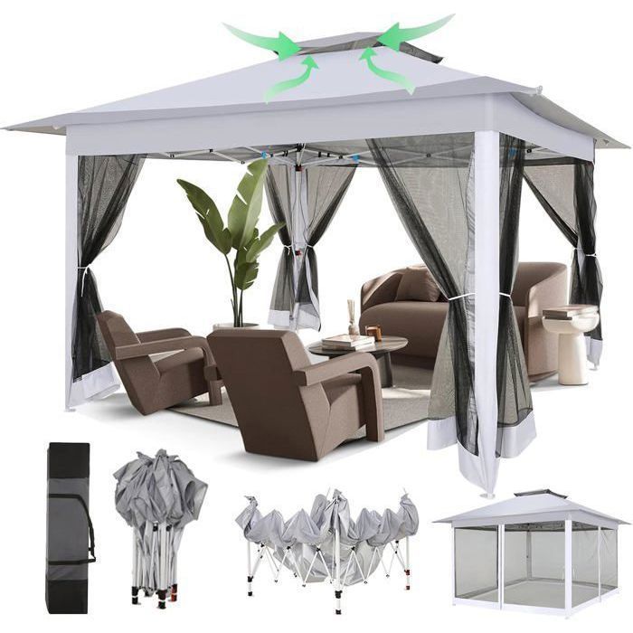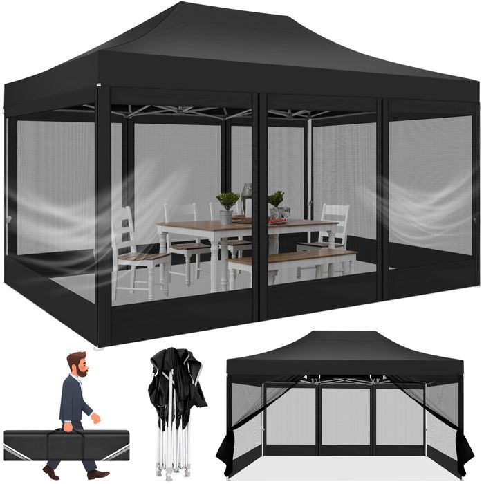 Tonnelle Pliante 3x45 ImperméableTonnelle de Jardin Exterieur avec Moustiquaire Parois LatéralesNoir
