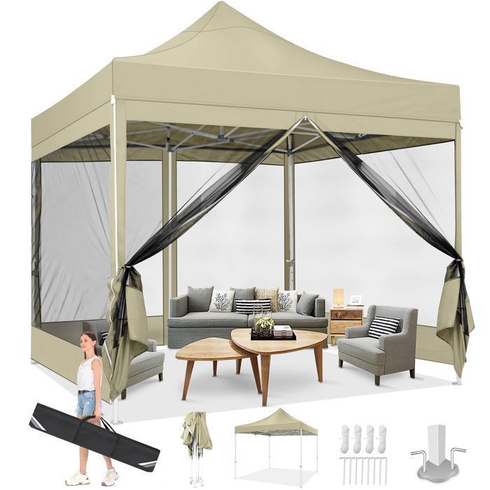 Tonnelle Pliante 3x3 ImperméableTonnelle de Jardin Exterieur avec Moustiquaire Parois Latérales,Noir