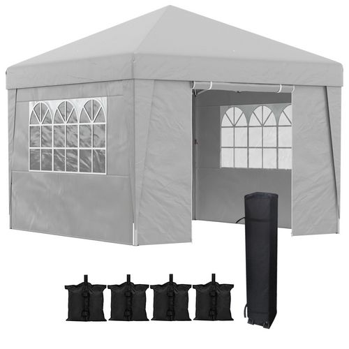 Tonnelle pop-up barnum pliant 3 x 3 x 2,65 m - paroi latérale amovible, sac transport, sacs à lester - acier toile gris