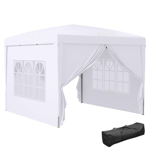 Tonnelle pop up pliante - barnum pliable - 4 cotés démontables - 4 fenêtres - acier oxford haute densité blanc