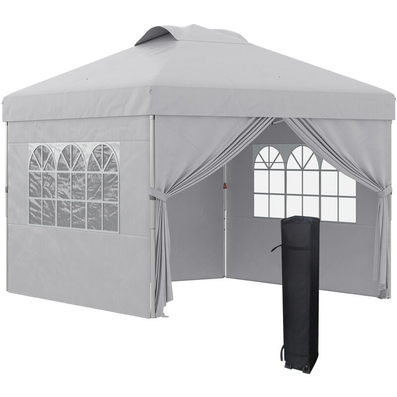 Outsunny Tonnelle de Jardin Pop-up Pliante tonnelle Barnum Tente de réception 3 x 3 m Anti-UV 30 + avec fenêtres parois latérales Sac de Transport Sacs de Sable Gris Clair
