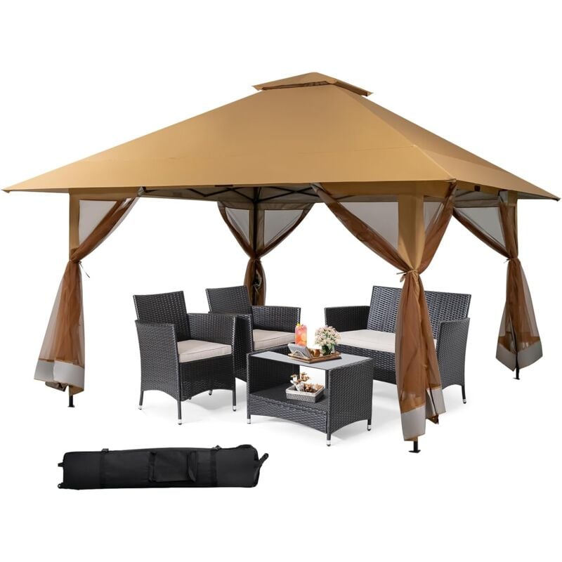 Alvantor Tonnelle de Jardin, Moustiquaire Tonnelle Auvent Igloo Pop Up pour 8-10 Personnes Parois, Pare-Soleil Instantané Résistant Aux UV pour Jardin, Patio, Arrière-Cour (12'x12', Beige)