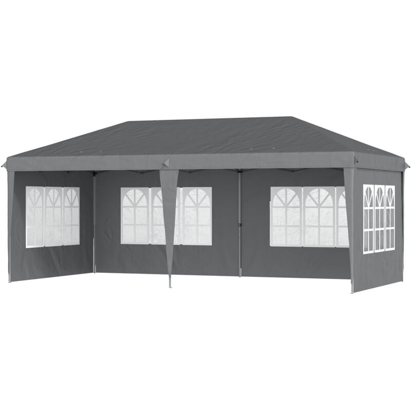 Outsunny Tonnelle de Jardin Pop-up Pliant Barnum réglable en Hauteur Protection UV 30+ 2 parois latérales - Sac de Transport Inclus - pour fête, événement Plein air - 297 x 297 x 288 cm Gris foncé