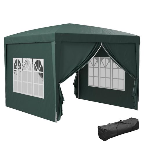 Tonnelle barnum pop-up pliant dim. 3L x 3l x 2,58H m 2 fenêtres sac transport acier Oxford vert