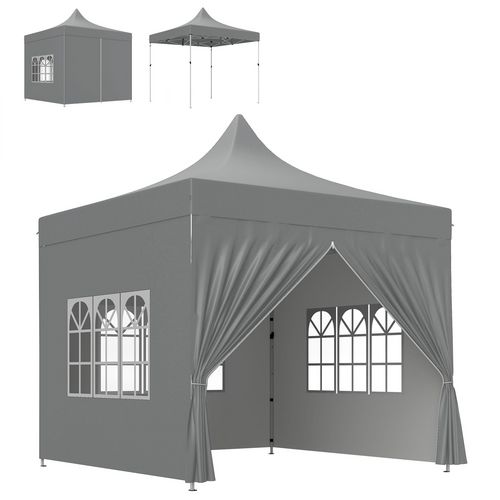 Tonnelle pop up pliante - barnum pliable - 4 cotés démontables - 4 fenêtres - acier oxford haute densité gris