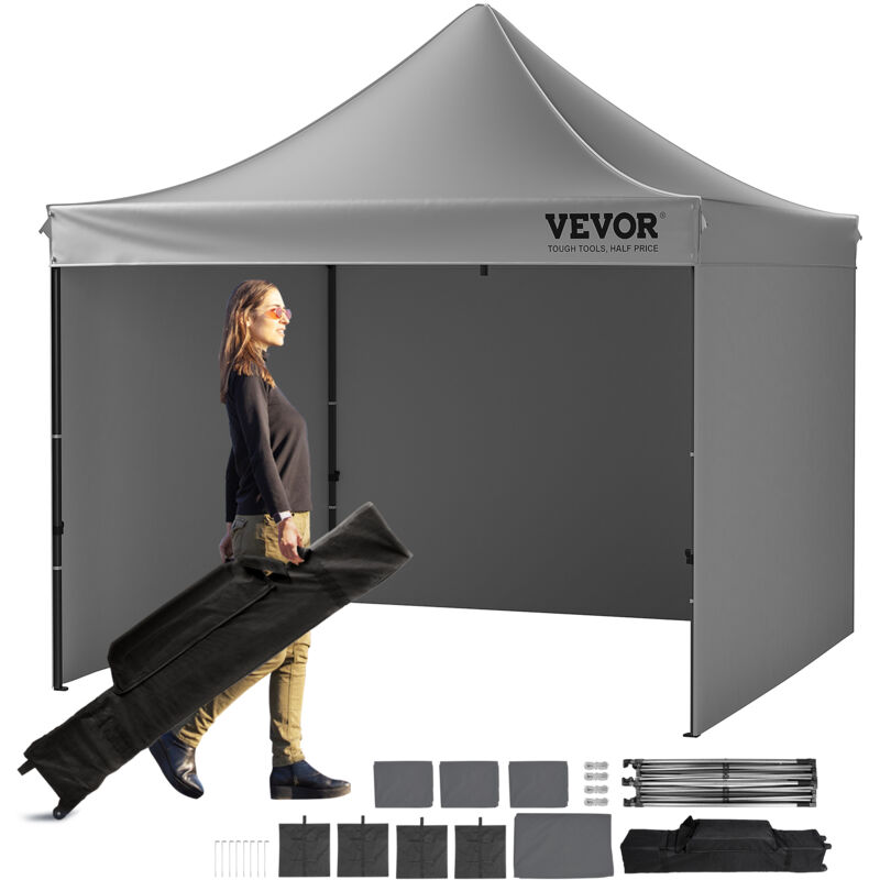 Vevor – Tonnelle pop-up 3x3m – Tissu argenté PU 500D – Protection UV UPF 50+ – Parois latérales amovibles – Sac de rangement avec roulettes – Gris