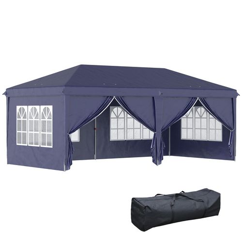 Tonnelle barnum pliant pop-up imperméabilisé 5,85L x 2,95l x 2,7H m 6 parois latérales amovibles 4 fenêtres + sac de transport bleu