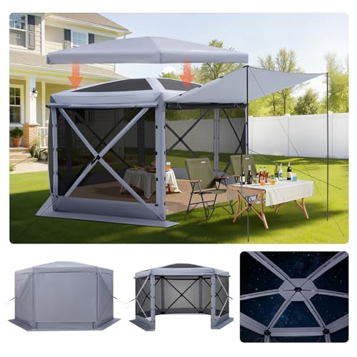 VEVOR Tente Moustiquaire Tonnelle Pop-up 3,6x3,6 m Tente Moustiquaire Pliante 8-10 Personnes Abri Solaire 6 Côtés pour Camping en Famille Terrasse Jardin, avec Toit Amovible, Sac de Transport, Gris