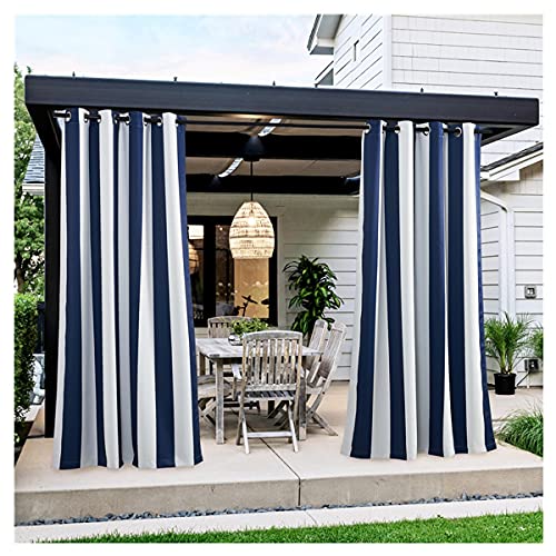 PPGE Home Rideaux Occultant de D'extérieur Impression à Rayures Rideau Exterieur Impermeable pour Pergola, Gazebo, Terrasse, Tonnelle, Patio,Rideau Isolant Thermique avec Oeillet, 1 Panneau