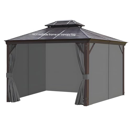 homegroove Lot de 4 Rideaux de Rechange imperméables avec Fermeture éclair pour tonnelle, Jardin, terrasse, Cour (Rideaux Uniquement) 3 x 3,7 m (Gris)