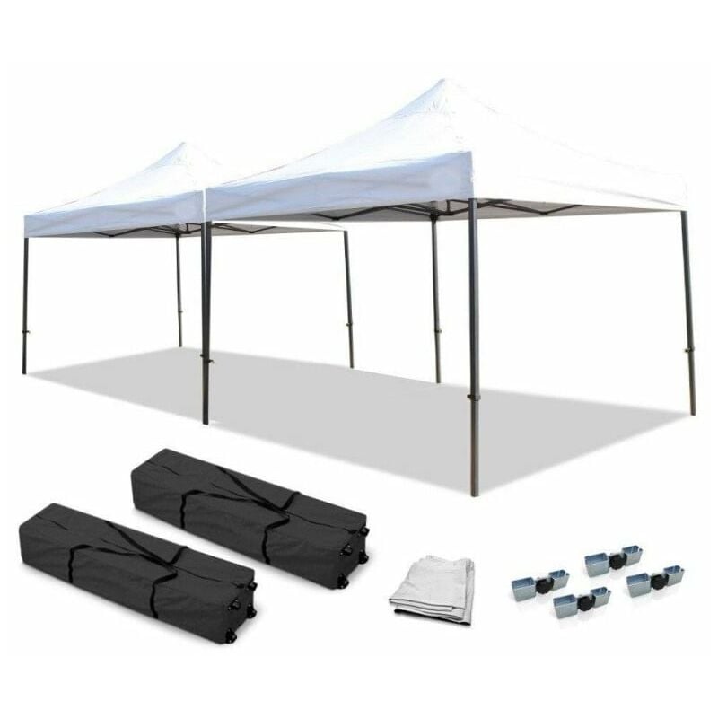 Terre Jardin – Lot de 2 tonnelles barnum professionnelles 3x3 pliantes – 4 connecteurs acier – Gouttière 300 cm – Toile polyester anti-UV 250g/m²