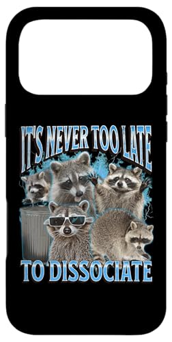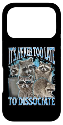 Never Too Late Dissociate Funny Raccoon Meme Bootleg Graphic Coque pour iPhone 17 Pro