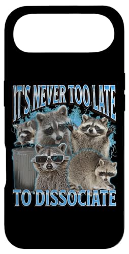 Never Too Late Dissociate Funny Raccoon Meme Bootleg Graphic Coque pour iPhone 17 Pro Max