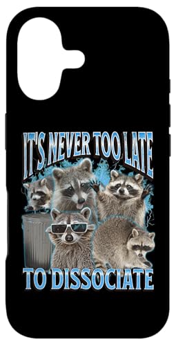 Never Too Late Dissociate Funny Raccoon Meme Bootleg Graphic Coque pour iPhone 17