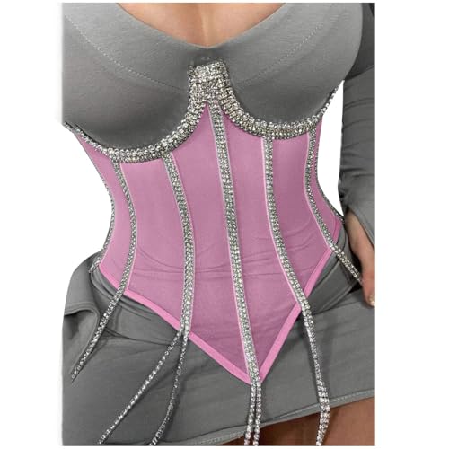 Corset Bustier Femme, Gilet Femme Strass Brillant avec Soutien-Gorge Dentelle Transparente Haut Dos Mode VêTement ExtéRieur Tube Top