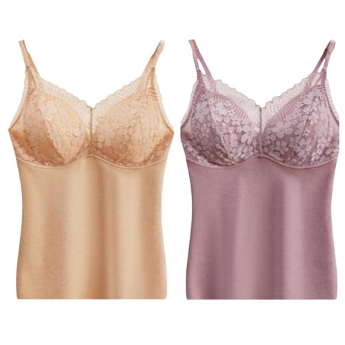 CuLtP 2 Pcs Hiver Dames Micropolaire Chaud Débardeurs avec Soutien-Gorge Intégré, Débardeurs Thermiques pour Femmes sous-Vêtements en Dentelle, Camisole Gilet sans Manches Maillot De Corps Cami Top,