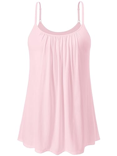 vislivin Débardeur Camisole pour Femmes avec Soutien-Gorge Intégré Debardeur Fluide Décontractée Caraco Bretelles Spaghetti Hauts sans Manche été Top S-4XL Pink XXXXL