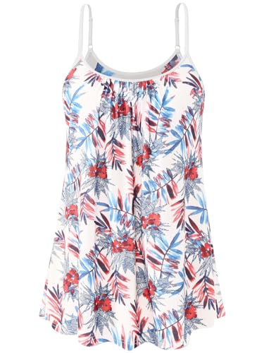 vislivin Débardeur pour Femme avec Soutien-Gorge Intégré Caraco Fluide Top D'été Décontracté Debardeurs sans Manches Tee Tank S-4XL White Leaf M