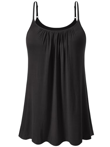vislivin Débardeur Camisole pour Femmes avec Soutien-Gorge Intégré Debardeur Fluide Décontractée Caraco Bretelles Spaghetti Hauts sans Manche été Top S-4XL Black M