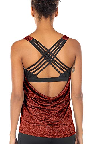 icyzone Femme Débardeur de Sport 2 en 1 - Débardeur sans Manches avec Soutien-Gorge intégré, Fitness Yoga Tank Top (S, Burnt Ochre)