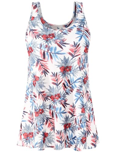 vislivin Débardeur pour Femme avec Soutien-Gorge Intégré Caraco Fluide Top D'été Décontracté Debardeurs sans Manches Tee Tank S-4XL White Leaf XXL