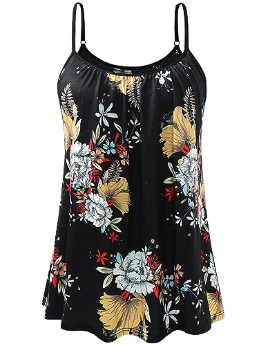 vislivin Débardeur Camisole pour Femmes avec Soutien-Gorge Intégré Debardeur Fluide Décontractée Caraco Bretelles Spaghetti Hauts sans Manche été Top S-4XL Black Flower S